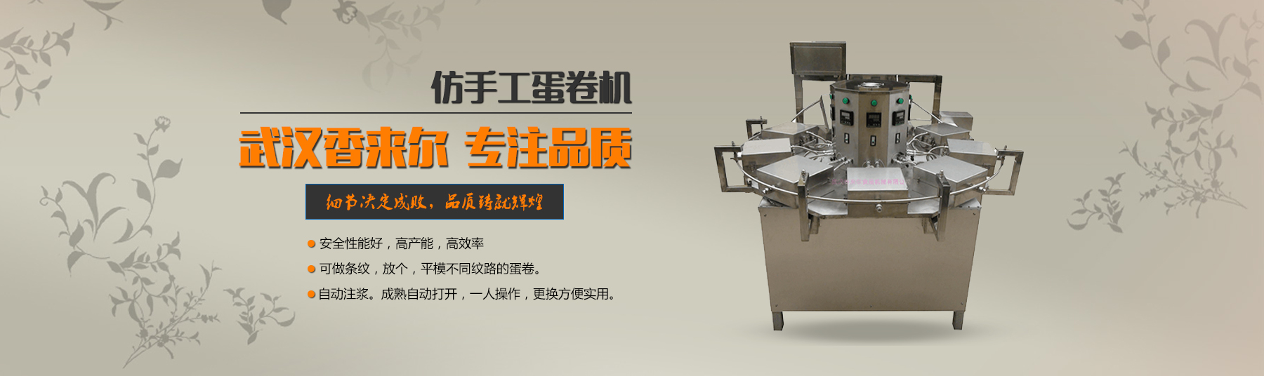 武漢香來(lái)爾食品機(jī)械有限公司成立于2001年2月,是生產(chǎn)銷(xiāo)售休閑食品加工設(shè)備的廠(chǎng)家。公司緊跟市場(chǎng)潮流與華工、華農(nóng)多名共同開(kāi)發(fā)新穎、實(shí)用的適應(yīng)市場(chǎng)需求的食品機(jī)械,自有車(chē)、刨、鉆、銑、剪板、折彎等先l進(jìn)機(jī)床100多臺(tái) 套。7年誠(chéng)信通會(huì)員,產(chǎn)品出口拉美、非洲、東南亞、歐洲等很多國(guó)家和地區(qū),國(guó)內(nèi)很多食品企業(yè)都是我們的合作伙伴。目前公司專(zhuān)門(mén)設(shè)立一個(gè)的售后 服務(wù)班子,在公司逐步發(fā)展強(qiáng)大的過(guò)程中,一直堅(jiān)持售后服務(wù)的同步發(fā)展,精良的食品設(shè)...